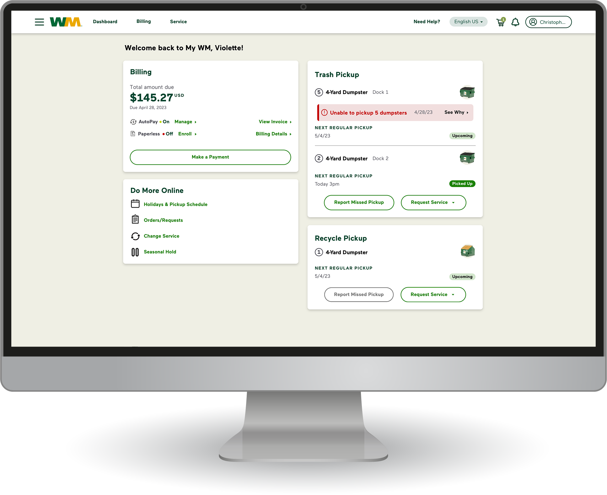 Customer dashboard used by 20M+ customers responsible for allowing users to order, manage, and view their services as well as manage their billing and account information